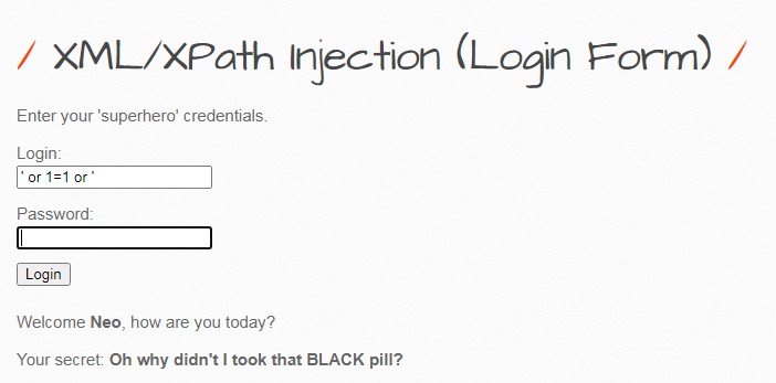 A1 - XML/XPath Injection (Login Form)