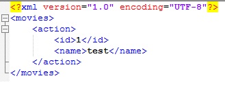 XML은 데이터를 트리 구조의 노드로 표현하며 사용자 정의로 데이터를 분류한다. 아래의 예시에서 최상위 노드는 'movies'이고 하위 노드는 'action'입니다. action의 하위 노드에는 'id'와 'name'이 있습니다. 이렇게 XML로 사용자는 다양한 데이터를 편의에 맞게 분류할 수 있습니다.