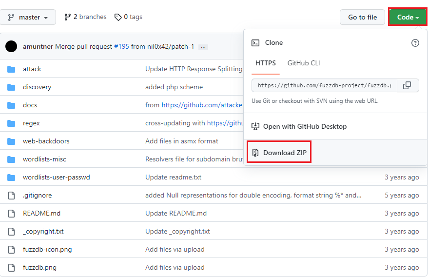 사전 공격에 사용할 비밀번호 목록 파일을 다운로드 (https://github.com/fuzzdb-project/fuzzdb)