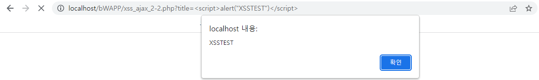 다시 취약점 확인을 하기 위하여 xss_ajax_2-2.php 페이지에서 스크립트 실행 여부를 확인해 보도록 하겠습니다.