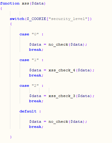 난이도 중에서는 xss_check_4 함수를 사용하는 것을 알 수 있으며 xss_check_4 함수는 functions_external.php에 정의되어 있고 addslashes() 함수를 이용하여 입력 데이터를 우회합니다. addslashes() 함수는 데이터베이스 쿼리에서 필드 값으로 저장하기 전에 사용되는 함수입니다. 만일 문자열에 작은따옴표('), 큰따옴표("), 백 슬래시(\), NULL 문자(%00)가 포함되어 있다면, 이 문자들 앞에 백 슬래시(\)를 붙여 특수 문자가 순수한 하나의 문자로 인식되도록 해줍니다.