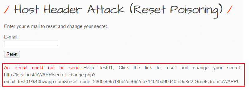 http://localhost/bWAPP/secret_change.php?email=test01%40bwapp.com&reset_code=2360efef518bb2de092db71401bd90d40fe9d8d2