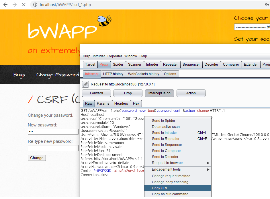 | 비박스(bWAPP) A8 CSRF (Change Secret) (0) | 2022.10.11 |