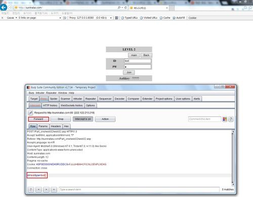 확인을 해보면 Raw 부분에 id / pw 값이 나오는걸 보실수 있습니다. 여기서 부터는 어떻게 해야되는지 한번씩 생각을 해보시기 바랍니다. (팁을 드리면 해당 부분을 수정이 됩니다.)