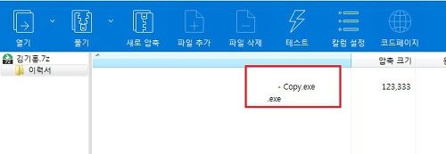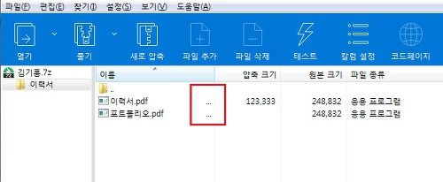 첨부파일에 내용을 보면 이력서.pdf, 포트폴리오.pdf 로 포함되고 있는것 처럼 보이지만 실제 파일제목 부분을 늘려보면 실행파일인것을 확인할수가 있습니다.