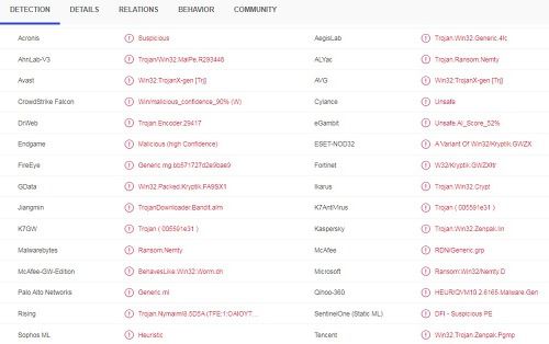 바이러스토탈 확인시 다수의 백신에서 탐지는 하고 있지만, 아직도 많은 백신에서는 탐지가 되지 않고 있는것으로 확인이 되며, 탐지가 되는 백신은 최신 업데이트를 받아 두는 것이 좋을것으로 판단됩니다.