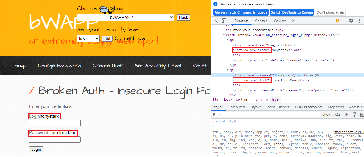 비박스(bWAPP) A2 Broken Auth. - Insecure Login Forms