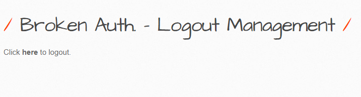 'ba_logout.php' 페이지에서는 로그아웃 관리 및 세션 관리에 대하여 점검합니다. 해당 페이지에 접속을 하면 Click here to logout.라는 문구를 확인할 수 있는데 여기서 here 글씨를 눌러보도록 하겠습니다.