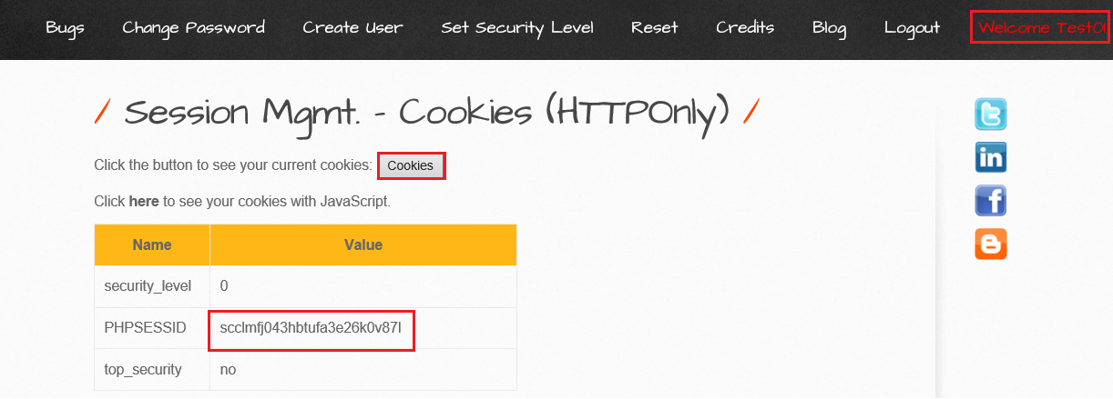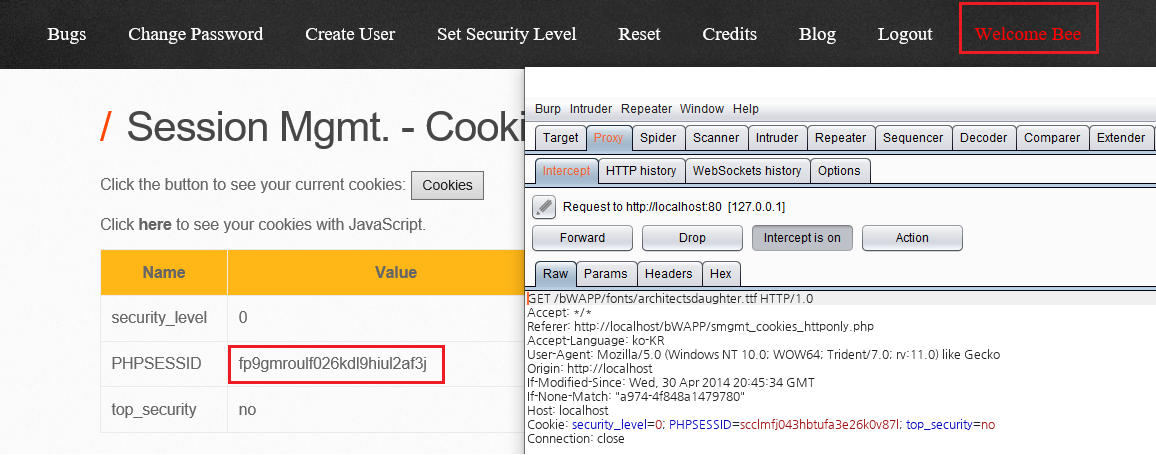 비박스(bWAPP) A2 Session Mgmt. - Cookies (HTTPOnly)