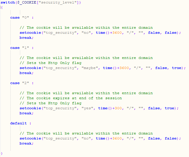 해당 페이지의 소스코드를 확인해 보면 high 단계에서는 세션 유지 시간을 300초(5분)로 설정을 하여 세션을 관리하고 있는 모습을 확인할 수 있습니다.