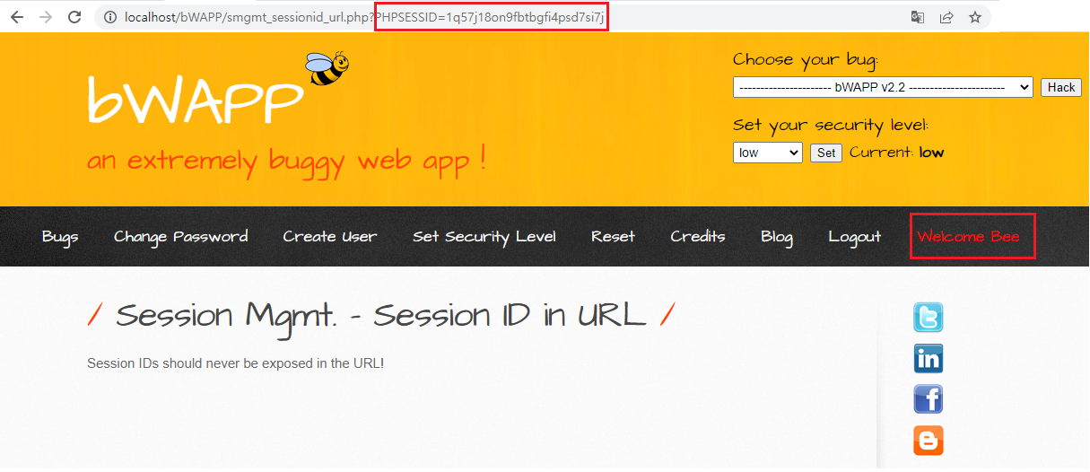 비박스(bWAPP) A2 Session Mgmt. - Session ID in URL