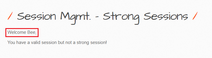 'smgmt_strong_sessions.php' 페이지에서는 bee(관리자 계정)의 세션 ID값을 가지고 다른 링크가 걸린 페이지에서 권한이 없는 사용자가 bee의 계정으로 접근이 가능한지 보기 위한 페이지입니다.