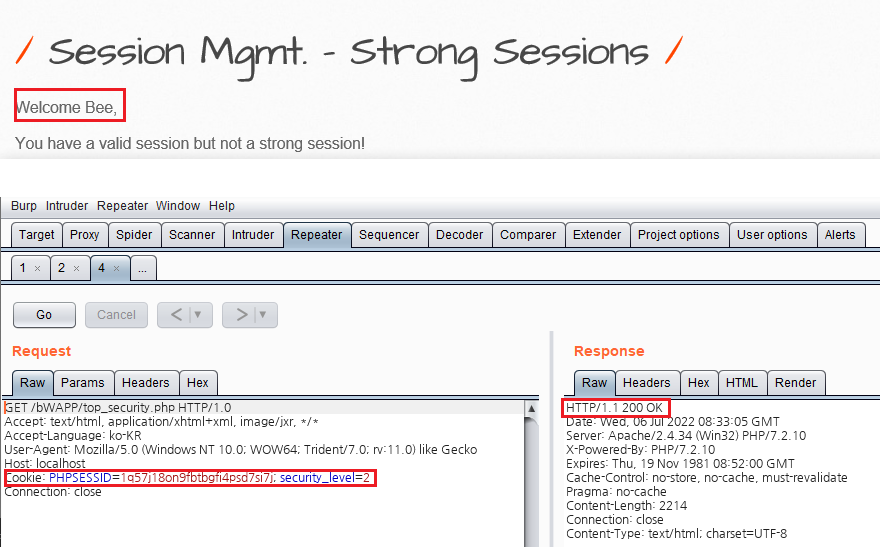 비박스(bWAPP) A2 Session Mgmt. - Strong Sessions