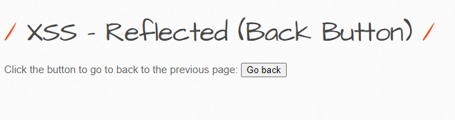 xss_back_button.php 페이지를 확인해 보시면 'Go back' 버튼과 함께 단추를 눌러 이전 페이지로 돌아갑니다 라는 문구를 확인할 수 있습니다. 'Go back' 버튼을 눌렀을 경우 어느 페이지로 연결이 되는지 확인하기 위해 소스코드를 확인해 보도록 하겠습니다.