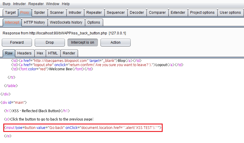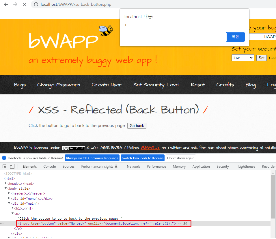 비박스(bWAPP) A3 XSS - Reflected (Back Button)