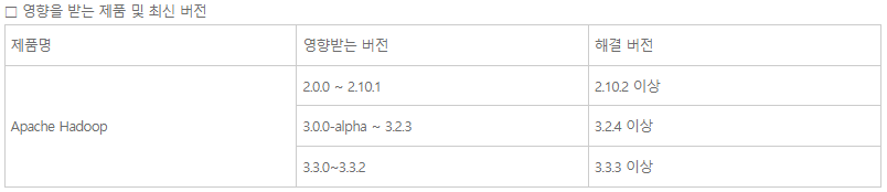 업데이트 : Apache Hadoop 보안 업데이트 권고 (2022.08.10)