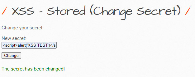A3 - XSS - Stored (Change Secret)