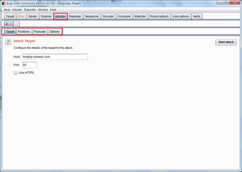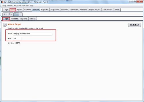 Intrude를 이용하여 공격을 수행할 때 가장 먼저 할 일은 공격 대상을 선택하는 일입니다. 여기서는 테스트 사이트에서 진행을 하도록 하겠습니다.