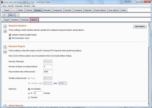 Options - 다른 도구와 마찬가지로 세부적인 공격 내용을 설정 할 수 있습니다.