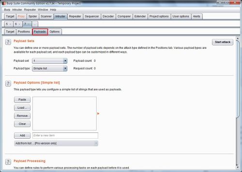 Payloads - Payload Position에 삽입할 Payload Set을 설정 하는 부분입니다.