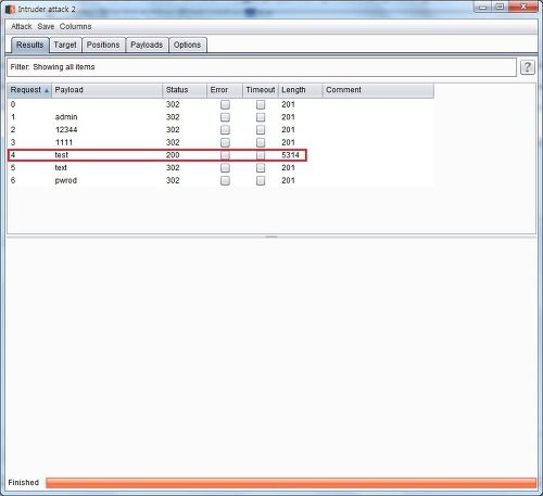 Start attack 버튼을 누르면 위에 그림과 같은 팝업창이 뜨면서 값을 대입하면서 내려가는 모습이 보이시고 test Status 200 과 같이 성공 메시지를 확인 할수 있습니다.