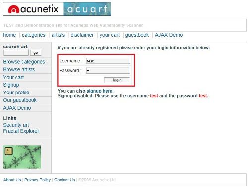 밑에보시면 username test and the password test 이렇게 다 나와 있지만, 저희는 기능을 알아가기 위해 Username test / Password 1 이렇게 넣고 프록시를 잡도록 하겠습니다.