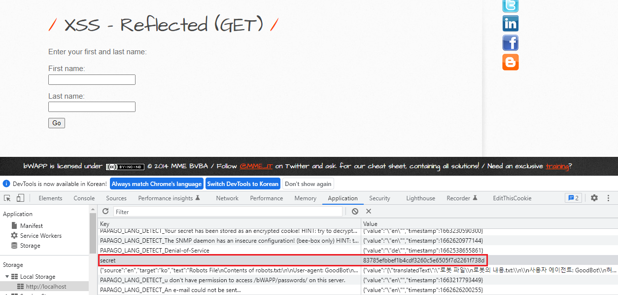 비박스(bWAPP) A6 HTML5 Web Storage (Secret)