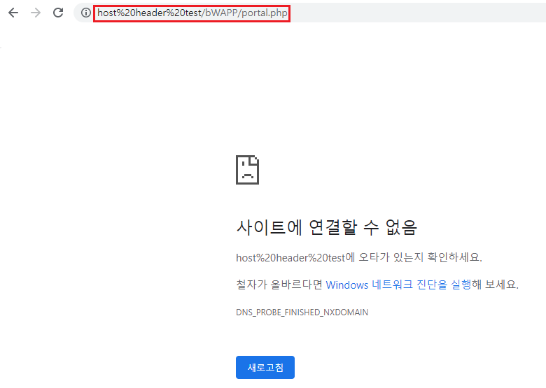 hostheader_1.php 페이지는 호스트 헤더 공격(캐시 포이즈닝)에 관한 내용이고 본문 내용에 보면 here이라는 문구가 보입니다. here 글씨를 누르게 되면 portal.php 페이지로 리다이렉션 되는 것을 알 수 있습니다. 해당 문제는 HTTP 요청 시 Host Header에 관한 문제로 버프 스위트 프락시 툴을 이용해 살펴보도록 하겠습니다.