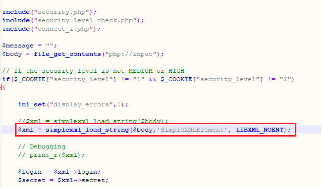 공격 구문을 입력하고 Go 버튼을 눌렀을 때 다음과 같은 에러 메시지가 나올 경우 xxe-2.php 페이지에서 소스코드를 수정해줘야 합니다.