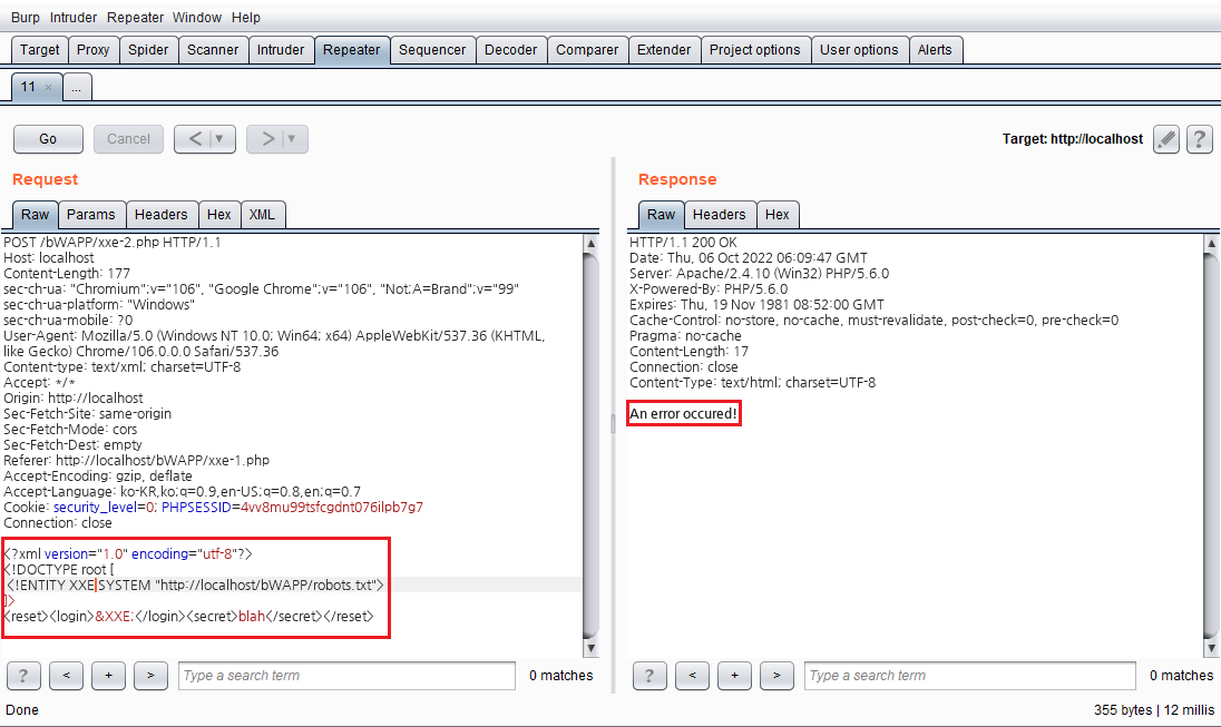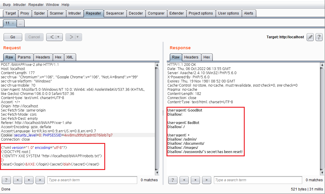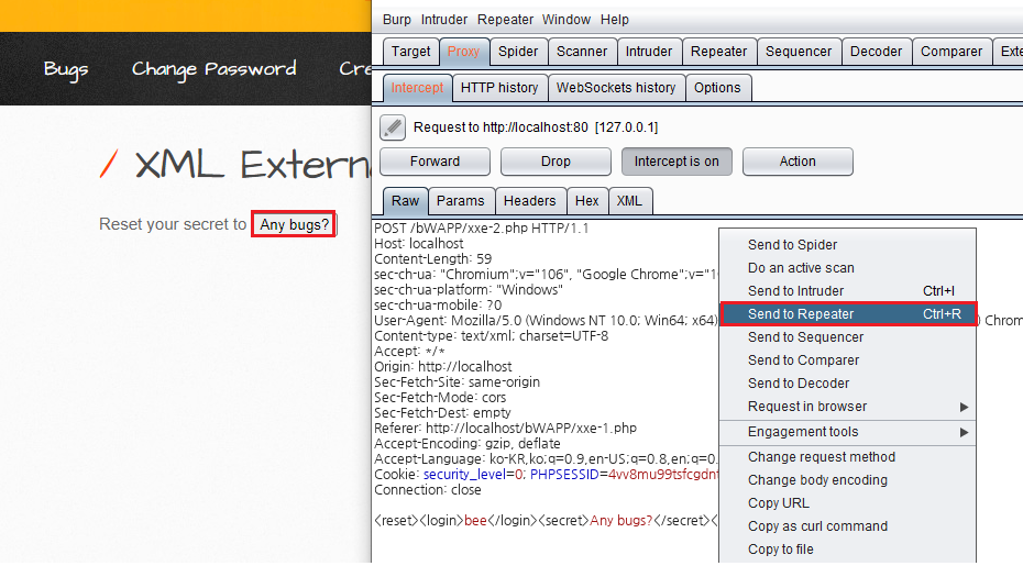 비박스(bWAPP) A7 XML External Entity Attacks (XXE)