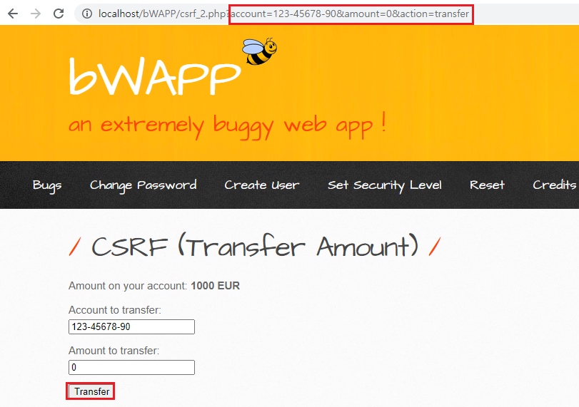 http://localhost/bWAPP/csrf_2.php?account=123-45678-90&amount=0&action=transfer HTTP/1.1
