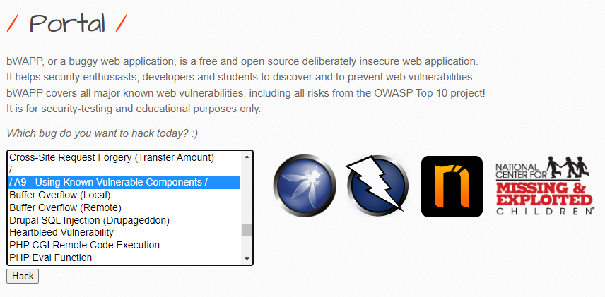 비박스(bWAPP) A9 Using Known Vulnerable Components (알려진 취약점이 있는 구성 요소 사용)