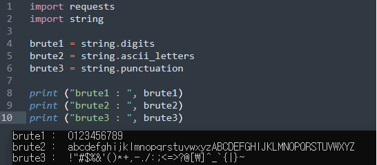 12번 라인 - brute 변수에 string 모듈을 사용하여 pw 값에 대입할 값을 저장