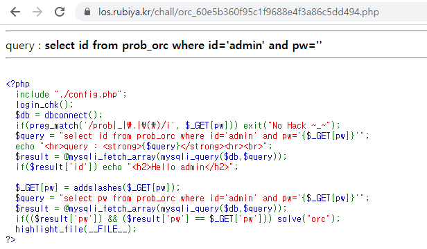 [LOS] Lord of the SQL Injection - orc