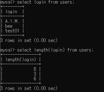 bWAPP DB에서 login 값의 길이 확인