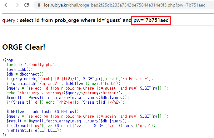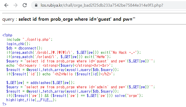$query = "select pw from prob_orge where id='admin' and pw='{$_GET[pw]}'";