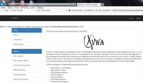 취약한 웹 애플리케이션 XVWA 테스트 환경 구축하기