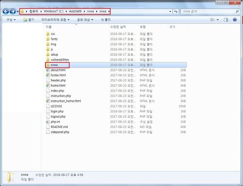AutoSet9 - xvwa - xvwa 다음과 같은 경로에 파일을 넣어 주신후에 xvwa 폴더를 하나 더 만드신후 config.php 파일을 넣어 줍니다.