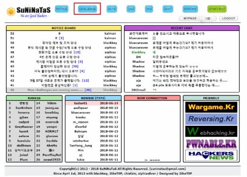 처음 홈페이지 접속 모습 입니다. 문제를 보시려면 CHALLENGE 를 클릭하시면 됩니다.