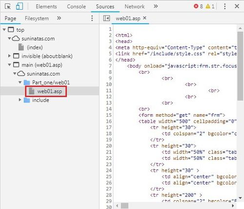 해당페이지의 소스를 보면 asp 파일이라는 것을 알수 있습니다.