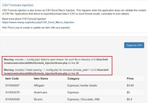 취약한 웹 애플리케이션 (XVWA) Formula Injection 취약점 진단