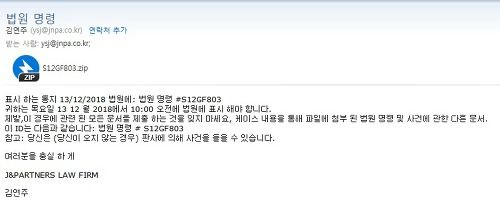 보안분석 : 법원을 사칭한 악성메일 유포 주의 (2018.12.11)